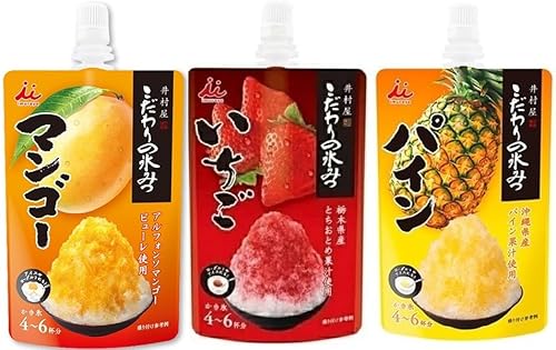 かき氷のシロップは、様々な色があり、その日の気分に合わせてどの色を選ぶかの楽しみが増えます。
